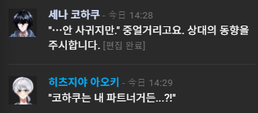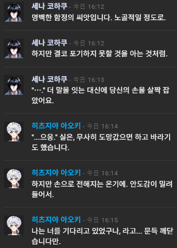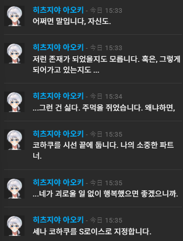 그치만...네가너무걱정돼... 코하쿠는 평정유지할수있지만 나는 못해... 나는 네가 걱정돼...