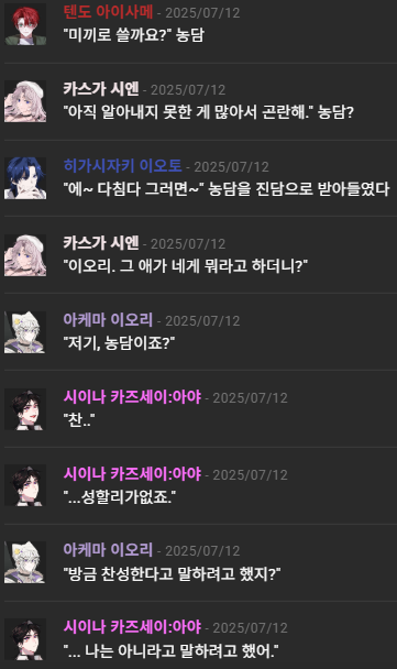 시엔, 키리타니한테 말을 포장할줄알아 라고 했지만 너도 못지않아... 확실히 람느님 깔이다 싶어요 (람느님 캐니까)