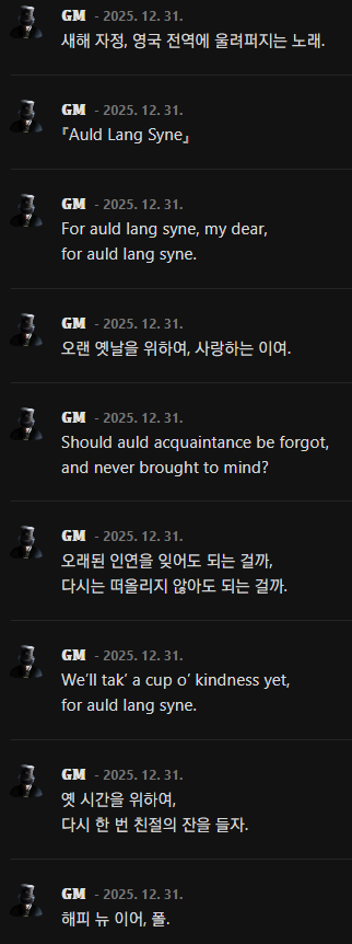 엔딩 막바지에서 예림님이 영국 새해에 듣는 곡을 틀어주신 것도 정말 절묘했어요.