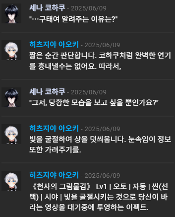 생각해보니 그럼 둘이 서로 합의했다는 거잖아...? 해서 시날끝나고 밀레님이랑 대화한게 웃겼습니다